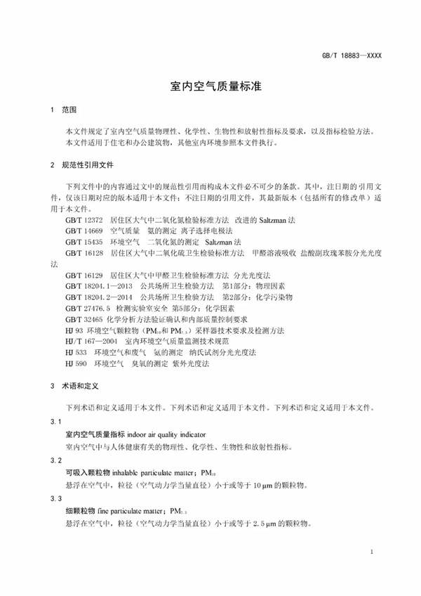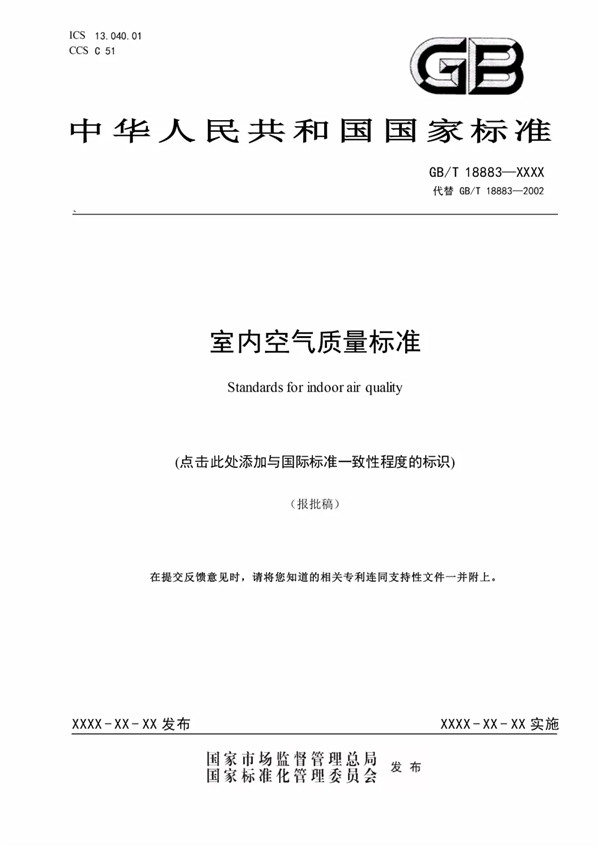 《室内空气质量标准》推荐性国家标准(征求意见稿)在全国标准信息公共服务平台公开征求意见,社会各界人士可登录全国标准信息公共服务平台的推标草案征求意见栏目反馈意见。